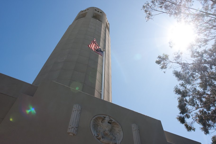 吃完午餐,在漁人碼頭閒晃了一陣子之後,我們開始準備往市中心出發。途中預計先前往舊金山的地標之一-Coit Tower看看有名的壁畫,也可看看舊金山的海景。