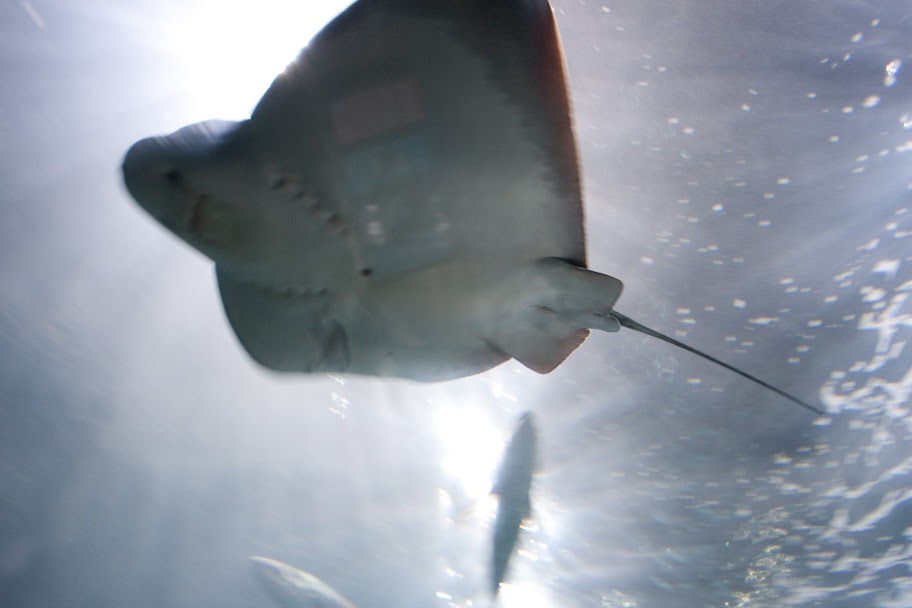 水族館內有一條號稱有300呎的海底隧道,可惜裡面的魚種其實不算多,然後玻璃有一點點(沒有很誇張)髒髒的,走過這個隧道,有一個展示章魚的水族箱,很少有機會在那麼近的地方看到章魚,但館內太暗加上人多,我就沒有特別拍照了。接著就要搭電梯前往另一個館。